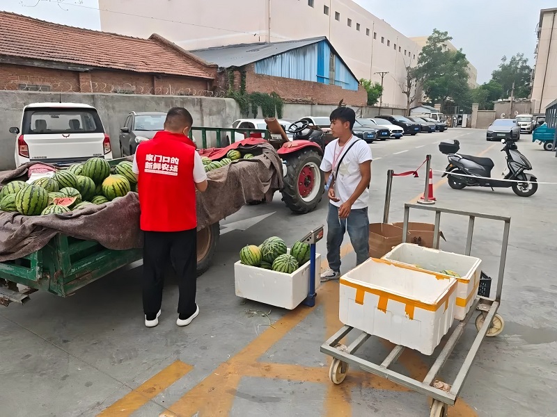 了解到這一情況后,市投集市未來路市場(chǎng)管理人員立即主動(dòng)上前,與瓜農(nóng)深入溝通,并迅速協(xié)調(diào)安排,將整車2000余斤西瓜轉(zhuǎn)運(yùn)至市投集市未來路市場(chǎng)內(nèi)避雨銷售。市場(chǎng)不僅免費(fèi)提供惠農(nóng)攤位,還通過線上線下渠道幫助推廣,號(hào)召市民朋友們愛心助農(nóng)。