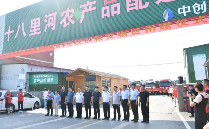 7月26日上午,鄭州市市場發(fā)展中心聯(lián)合十八里河農(nóng)產(chǎn)品配送中心和中歐商學(xué)院舉行賑災(zāi)物資捐贈儀式,向我市各地受災(zāi)嚴(yán)重地區(qū)捐贈礦泉水、牛奶、面包、方便面等應(yīng)急生活物資。